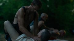 The scene which is circulating online on X (Twitter) reveals Melling’s character Colin and four other subs laying on their stomachs, exposed, on two tables in the woods.