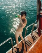Photos of Yungblud quickly appeared online where he was seen walking around naked on the boat, enjoying a drink with friends and sometimes attempting modesty by covering himself with his spare hand.